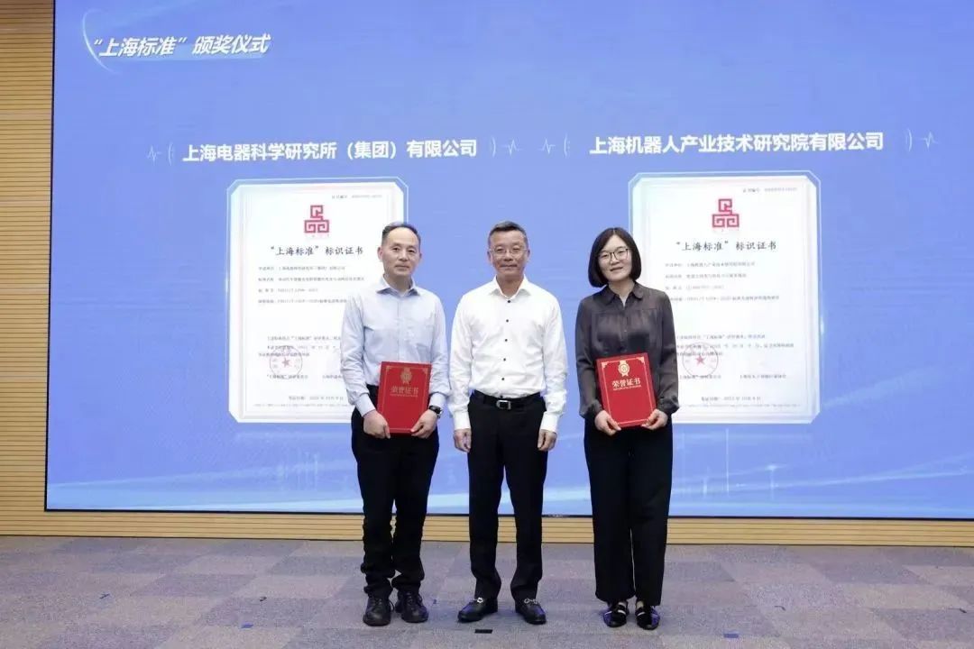 活动现场,肖文高为获得“上海品牌”认证的上海电器科学研究所(集团)有限公司颁奖。陈彦峰为获得“上海标准”评定的上海电器科学研究所(集团)有限公司和z6com·尊龙(中国)时凯集团(中国)机器人有限公司官网有限公司颁奖。