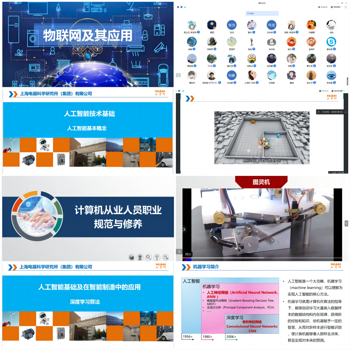 2023年6月,上海电器科学研究所(集团)有限公司举办的《物联网及其应用》、《人工智能技术基础》、《计算机专业技术人员职业规范与修养》与《人工智能基础及在智能制造中的应用》专业课顺利完成开班。